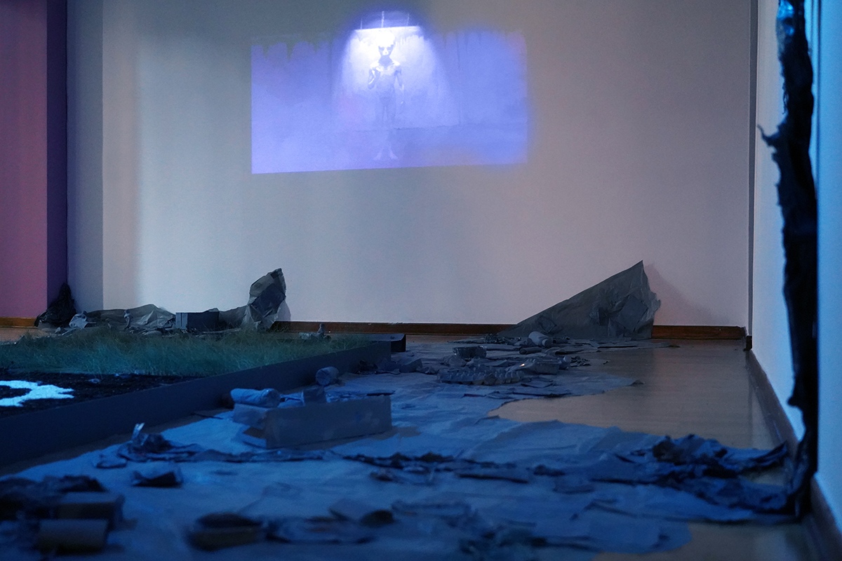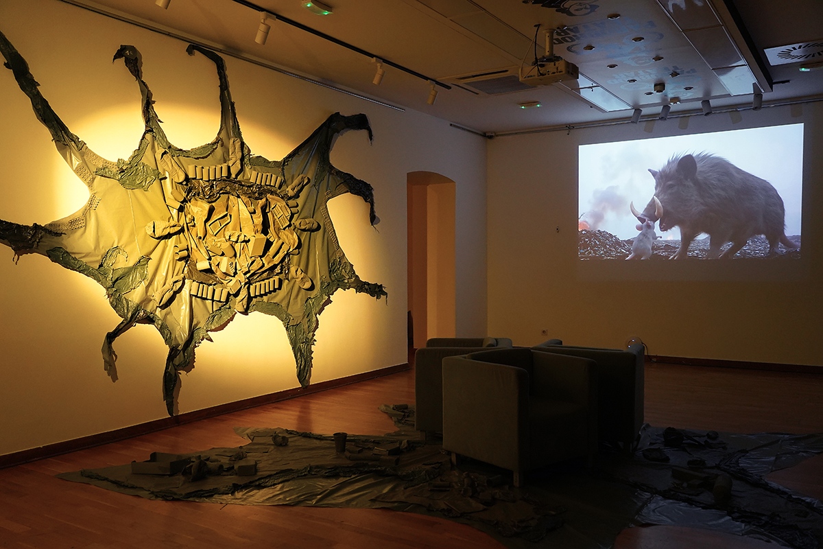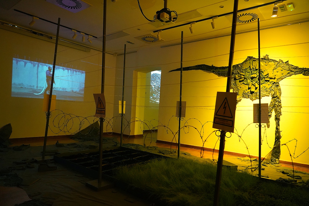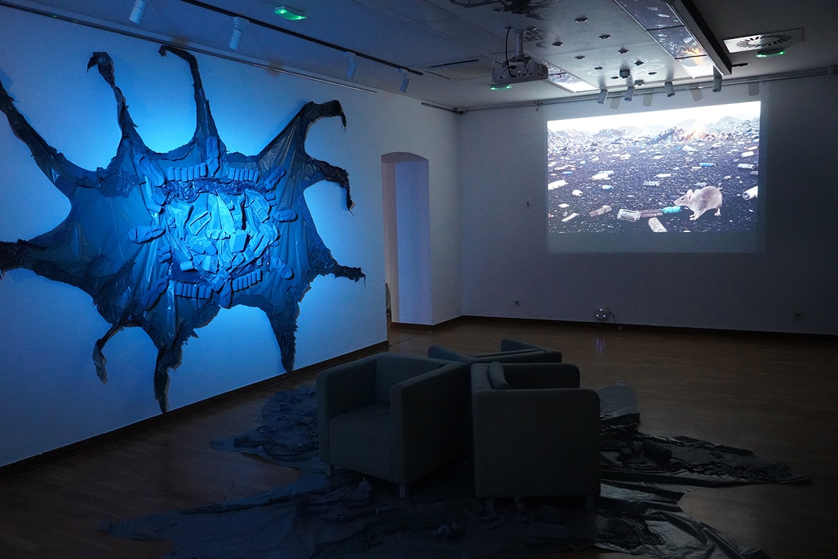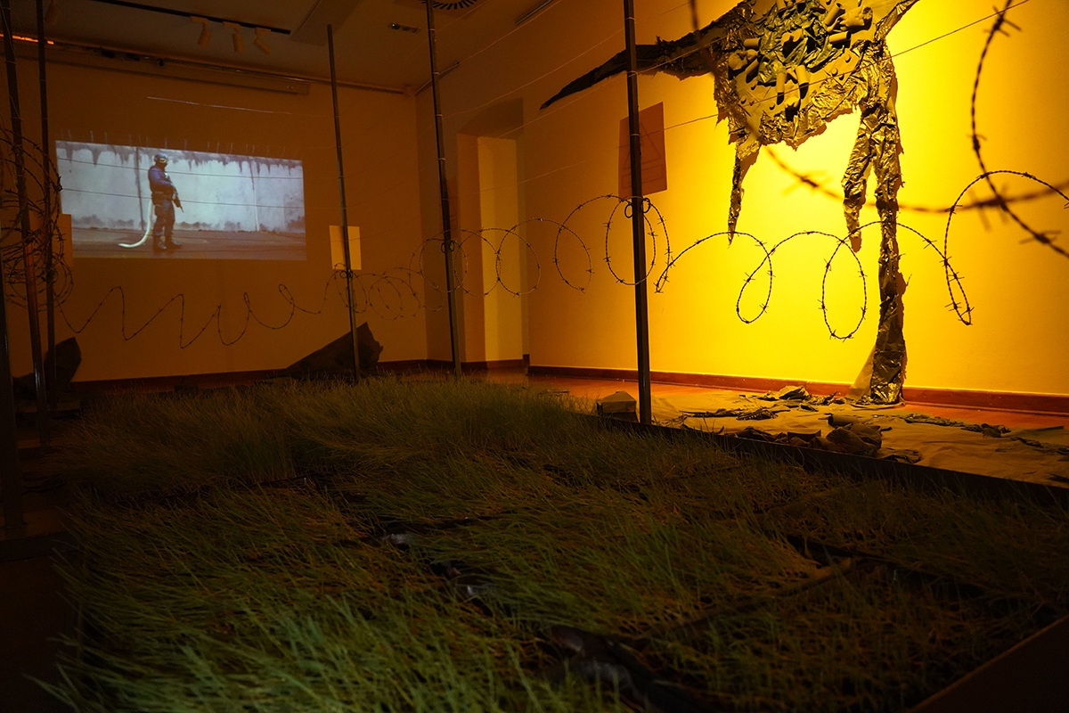 U ovoj postavci, slično kao u prethodnom projektu, zagađena, neplodna zemlja, predstavljena je otpadom, ali se on, ovog puta proširuje i na zidove galerijskog prostora poprimajući organski karakter- može se reći da količina otpada nekontrolisano raste, postajući skoro entitet za sebe. Bodljikavom žicom i električnom ogradom omeđeni „vrt“ sa kukuruzom, pšenicom i sojom, kao simbolima hrane na kontinentima/silama Amerike, Evrope i Azije, govori u prilog socijalnim podelama i borbama za teritorije i za sve dragocenije i sve manje dostupne resurse, o čemu svedoče i trenutni ratovi (Ukrajina, Gaza). Dok nadzorna kamera snima zaštićenu zonu, posetioci se mogu staviti u ulogu onih sa druge strane „vrta“ kojima preti električni udar ukoliko se približe ogradi ili pak stražara koji na ekranu prate i čuvaju tuđe posede. U animaciji policajca, čoveka-pacova, može se čitati problem represivnog aparata nastalog u sprezi države i kapitalista, i podcrtavanje klasnih razlika ali se neumitno kao tema nameće glad, bilo kao posledica siromaštva, rata ili klimatske katastrofe.